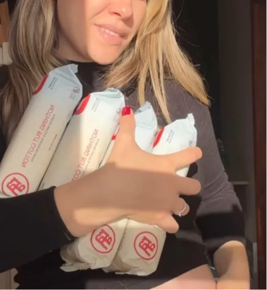 A. Those are natural cotton specks. Because our cotton is left unbleached, you may see small variations in color. It’s a visual reminder that the wipe hasn’t been over-processed.